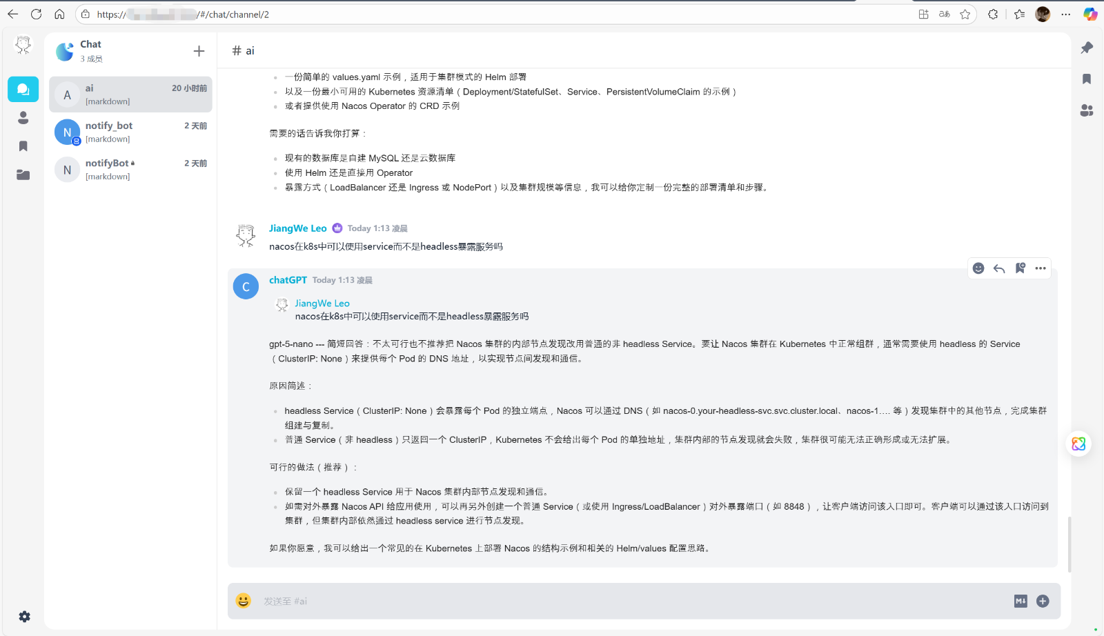此时即已支持提供外部访问,如果需要外网访问,可使用nginx反代至voce-chat(未使用ingress)